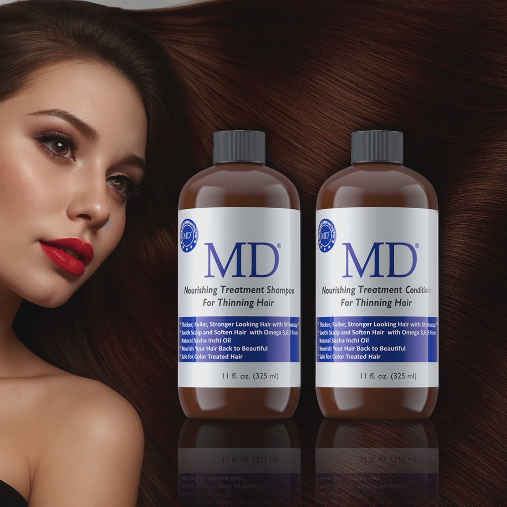 MD Nourishing Treatment Shampoo and Conditioner bundle from MD Hair cafor thinning hair, scalp health, and visible volume