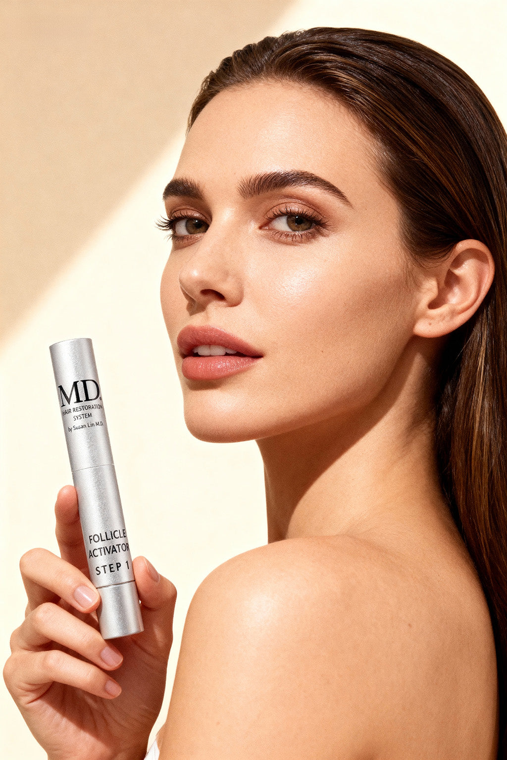 No. MD Follicle Activator is a drug-free, cosmetic topical treatment. It does not contain minoxidil or other pharmaceutical ingredients. It works through botanically derived peptides, antioxidants, and nutrients that support a healthy scalp environment.