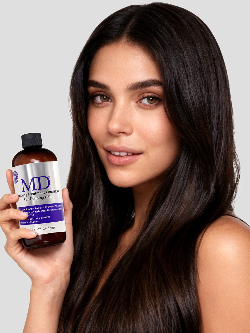 Scientifically designed for men and women experiencing thinning, MD® Conditioner delivers fuller, stronger, more resilient hair—with results you can see and feel.